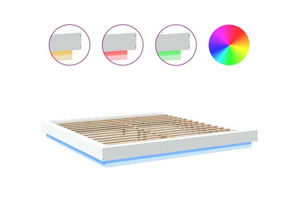 Multidom Posteľný rám s LED svetlami biely 200x200 cm kompozitné drevo