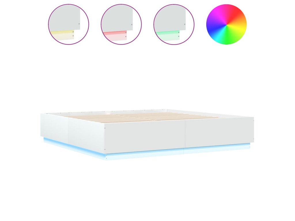 Multidom Posteľný rám s LED svetlami biely 200x200 cm kompozitné drevo