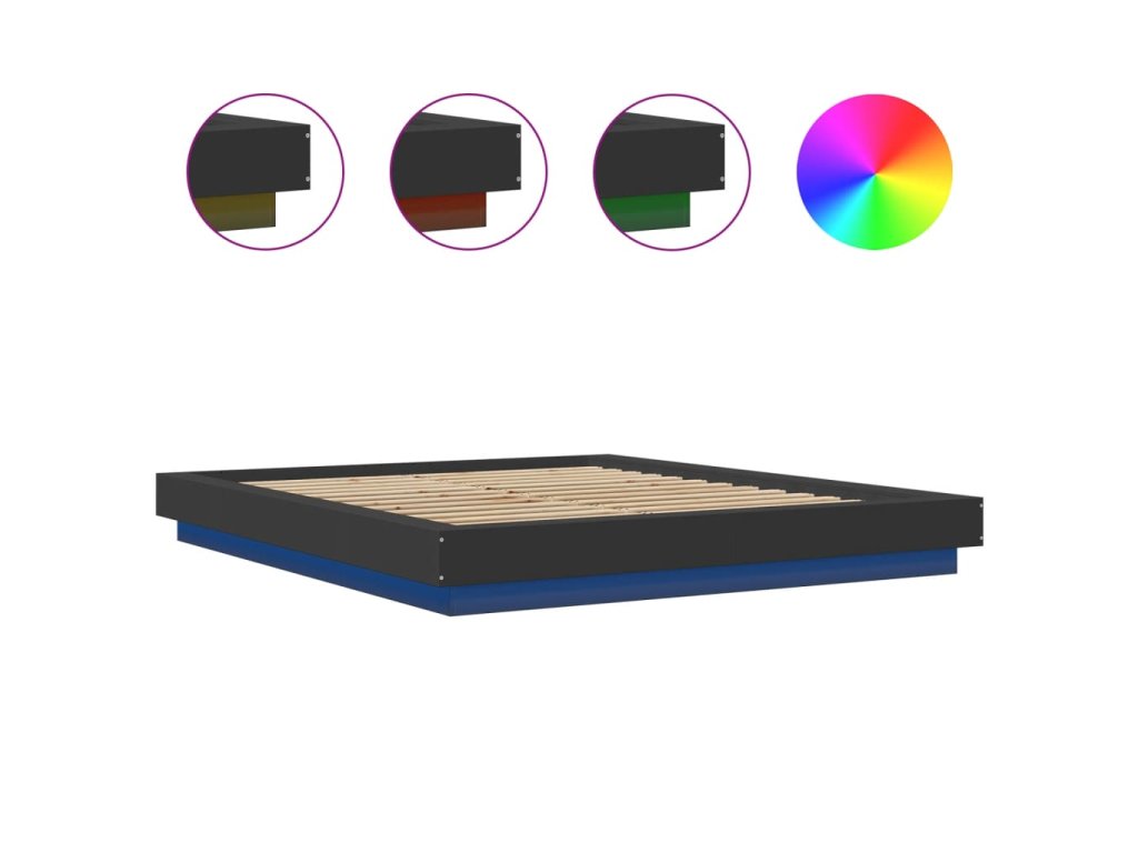 Multidom Posteľný rám s LED svetlami čierny 160x200 cm kompozitné drevo