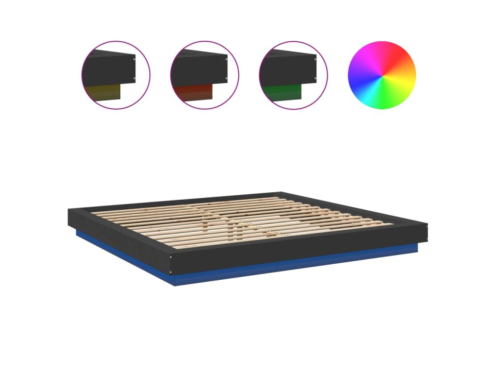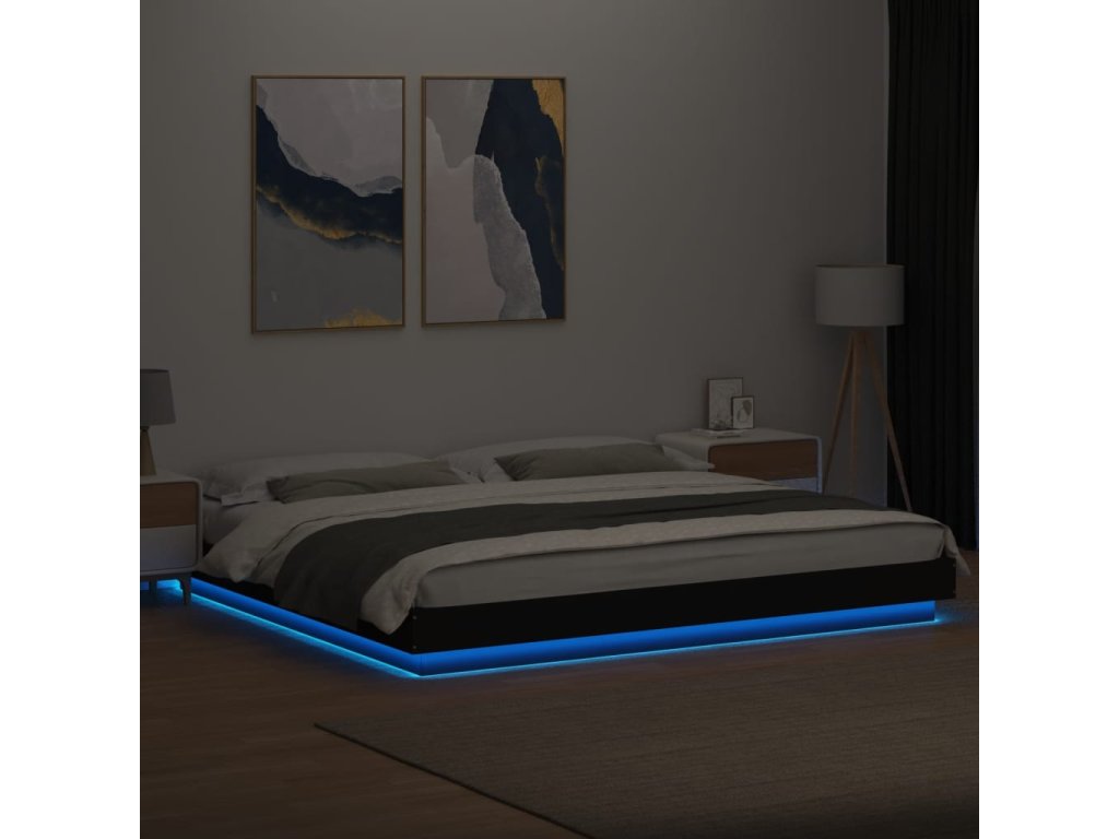 Multidom Posteľný rám s LED svetlami čierny 200x200 cm kompozitné drevo