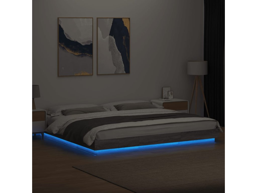 Multidom Posteľný rám s LED svetlami sivý sonoma 180x200cm kompoz. drevo