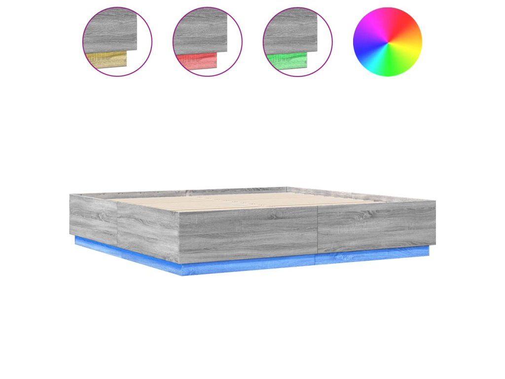 Multidom Posteľný rám s LED svetlami sivý sonoma 180x200cm kompoz. drevo