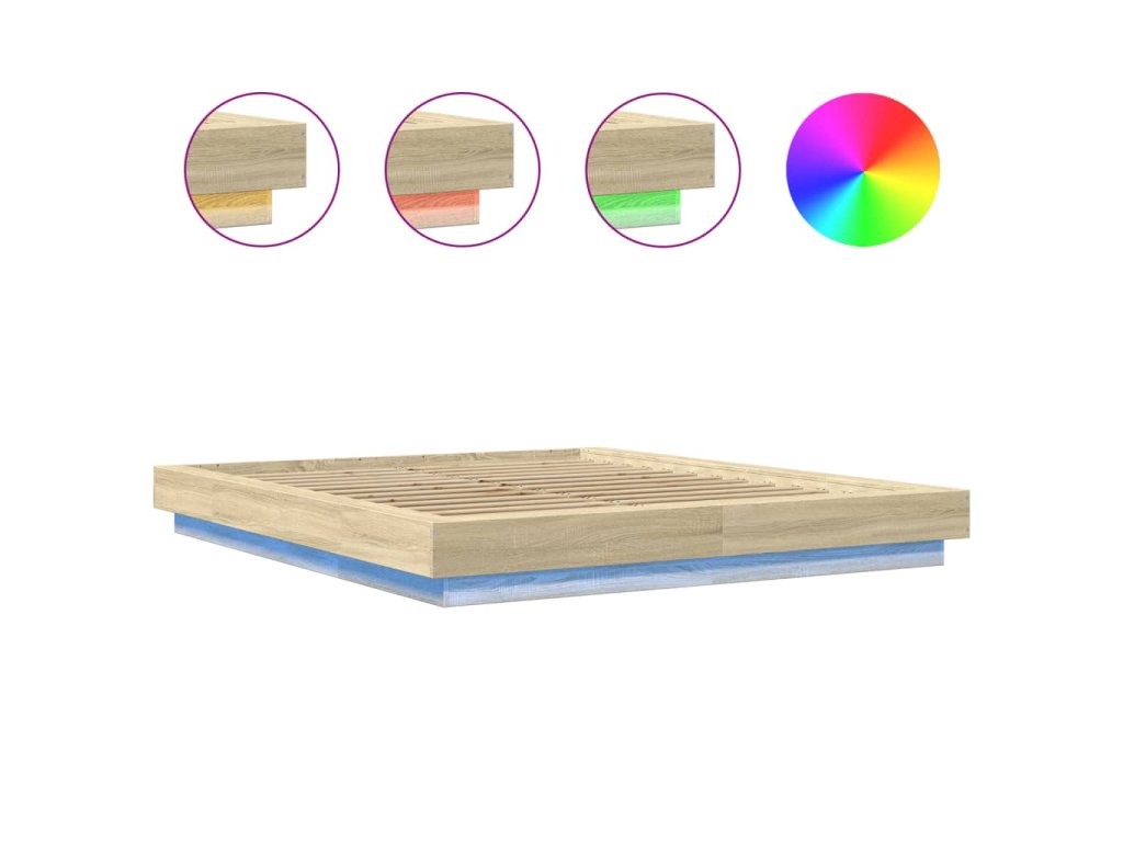 Multidom Posteľný rám s LED svetlami sonoma 150x200 cm kompozitné drevo