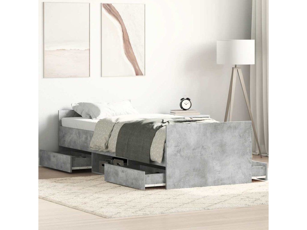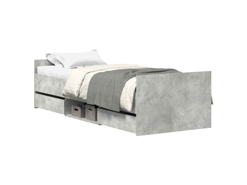 Multidom Posteľný rám s predným a zadným čelom, betónovo sivý 90x200 cm