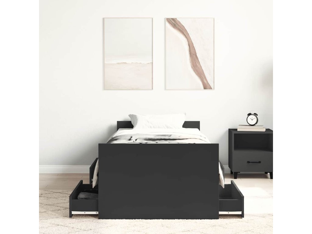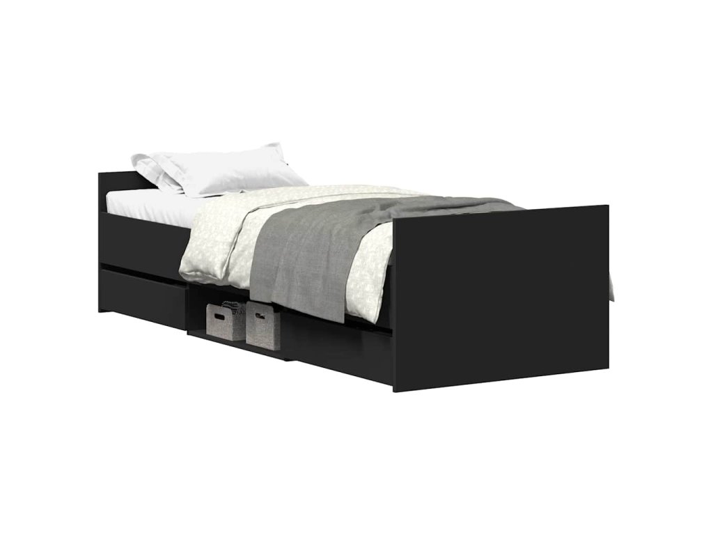 Multidom Posteľný rám s predným a zadným čelom, čierny 100x200 cm