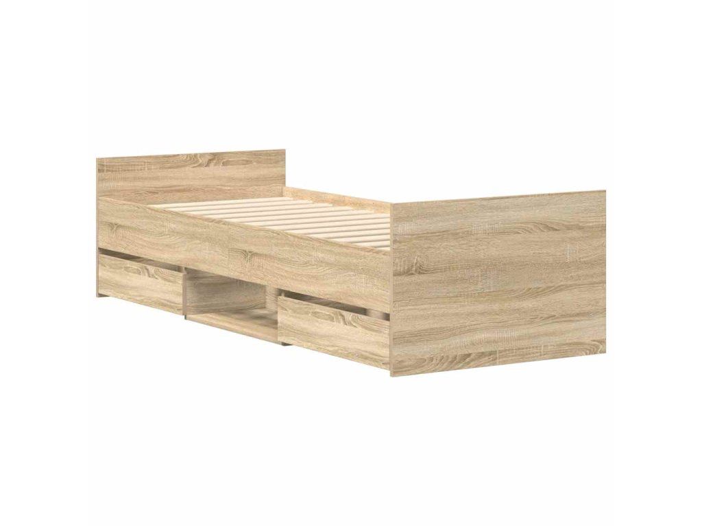 Multidom Posteľný rám s predným a zadným čelom, dub sonoma 75x190 cm