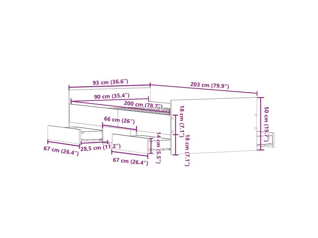- Vhodné rozmery matraca: 90 x 200 cm (Š x D) (matrac nie je súčasťou balenia)