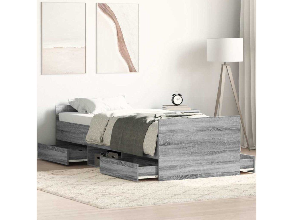 Multidom Posteľný rám s predným a zadným čelom, sivá sonoma 90x200 cm