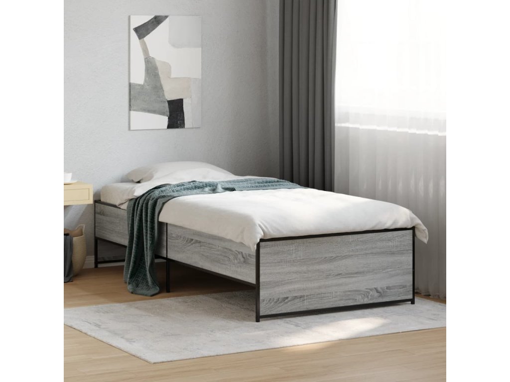Multidom Posteľný rám sivý sonoma 90x190 cm kompozitné drevo a kov