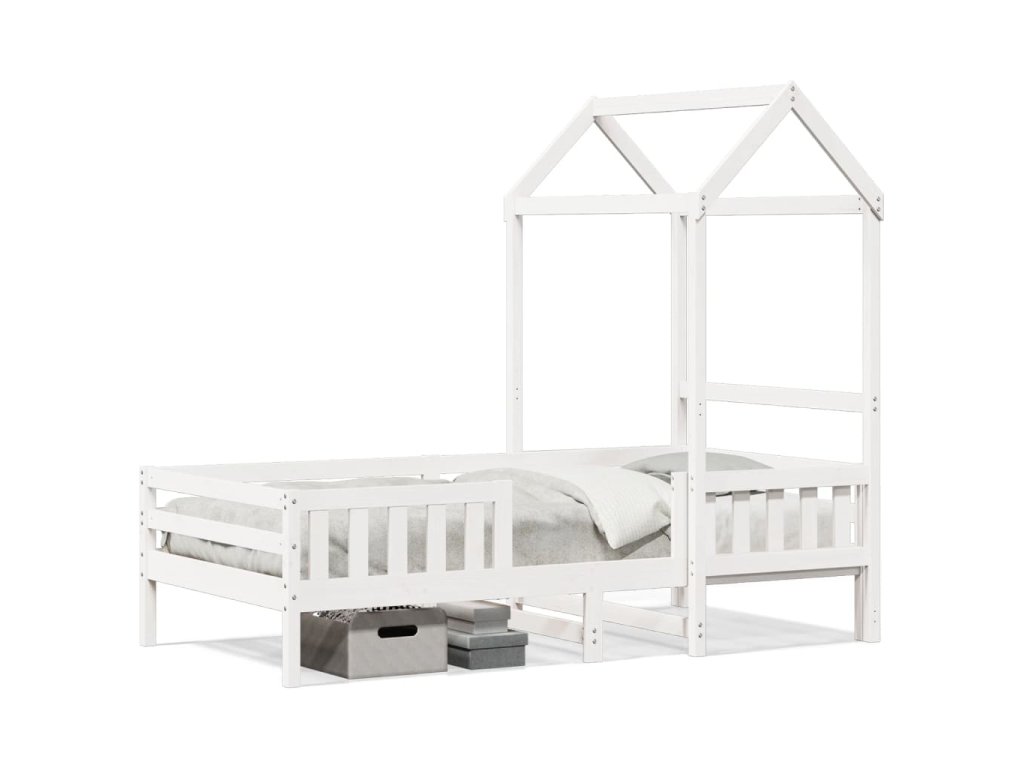 Multidom Posteľný rám so strieškou biely 75x190 cm borovicový masív