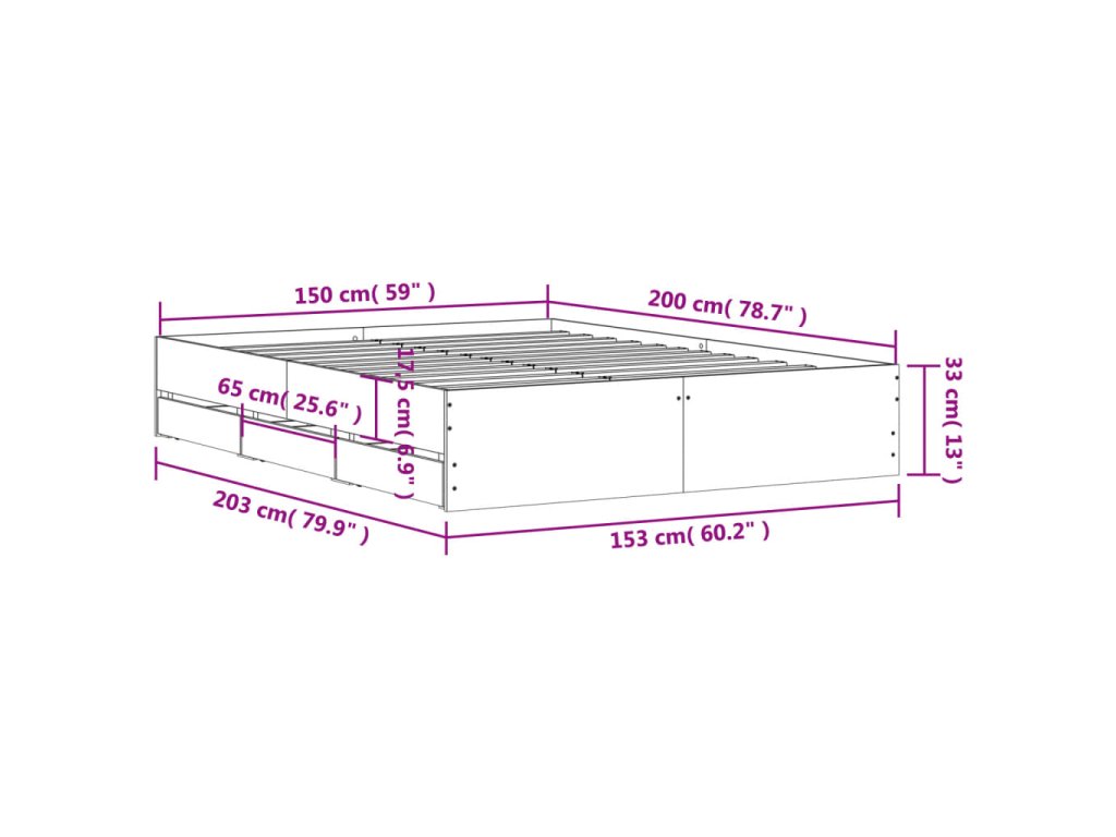 Multidom Posteľný rám so zásuvkami betónovosivý 150x200cm kompozit.drevo