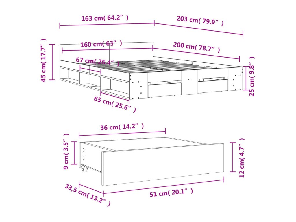 Multidom Posteľný rám so zásuvkami biely 160x200 cm kompozitné drevo