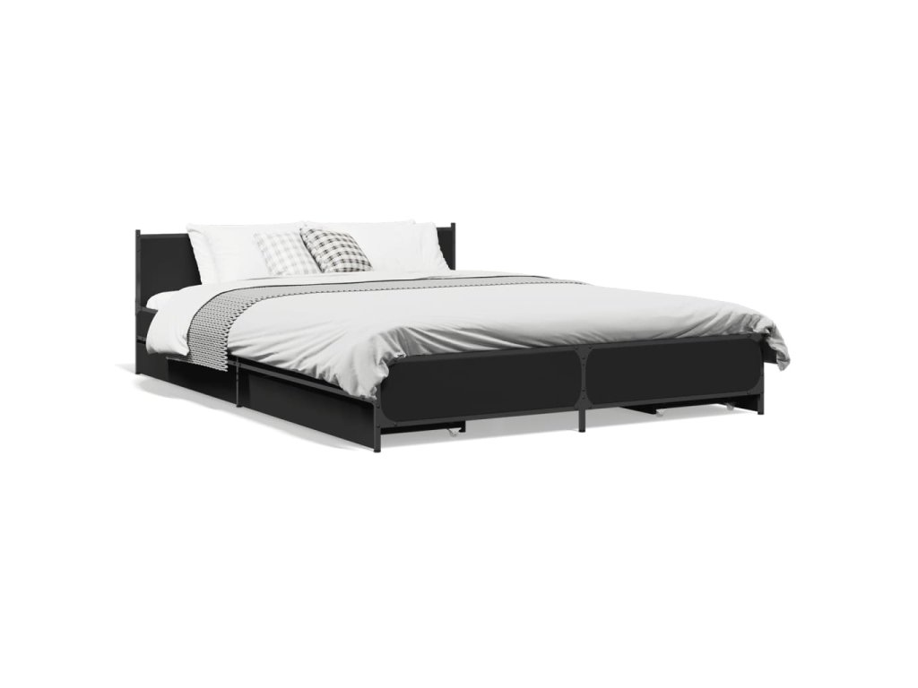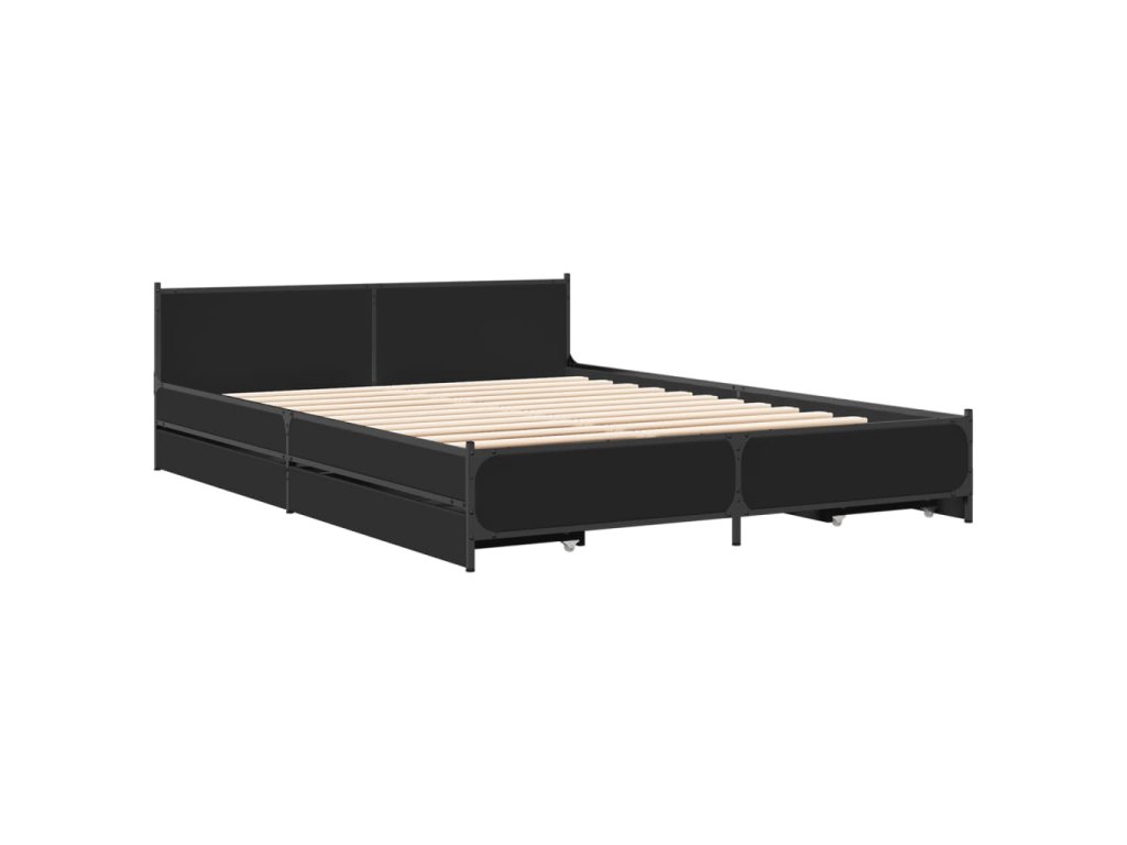 Multidom Posteľný rám so zásuvkami čierny 150x200 cm kompozitné drevo