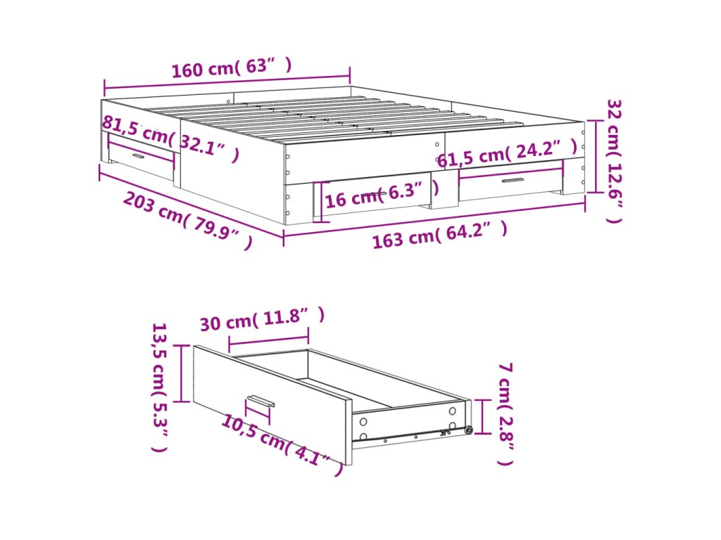 Multidom Posteľný rám so zásuvkami čierny 160x200 cm kompozitné drevo