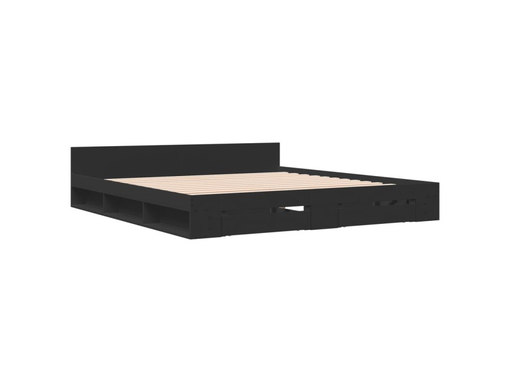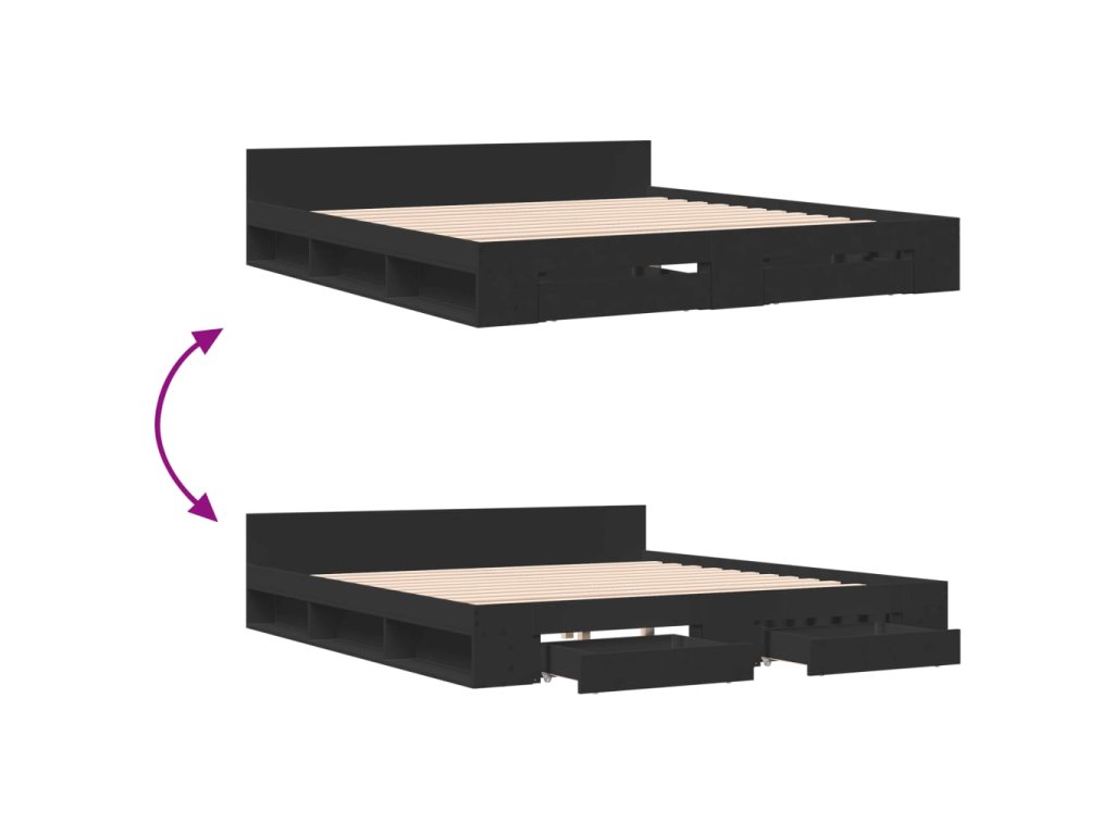 Multidom Posteľný rám so zásuvkami čierny 180x200 cm kompozitné drevo