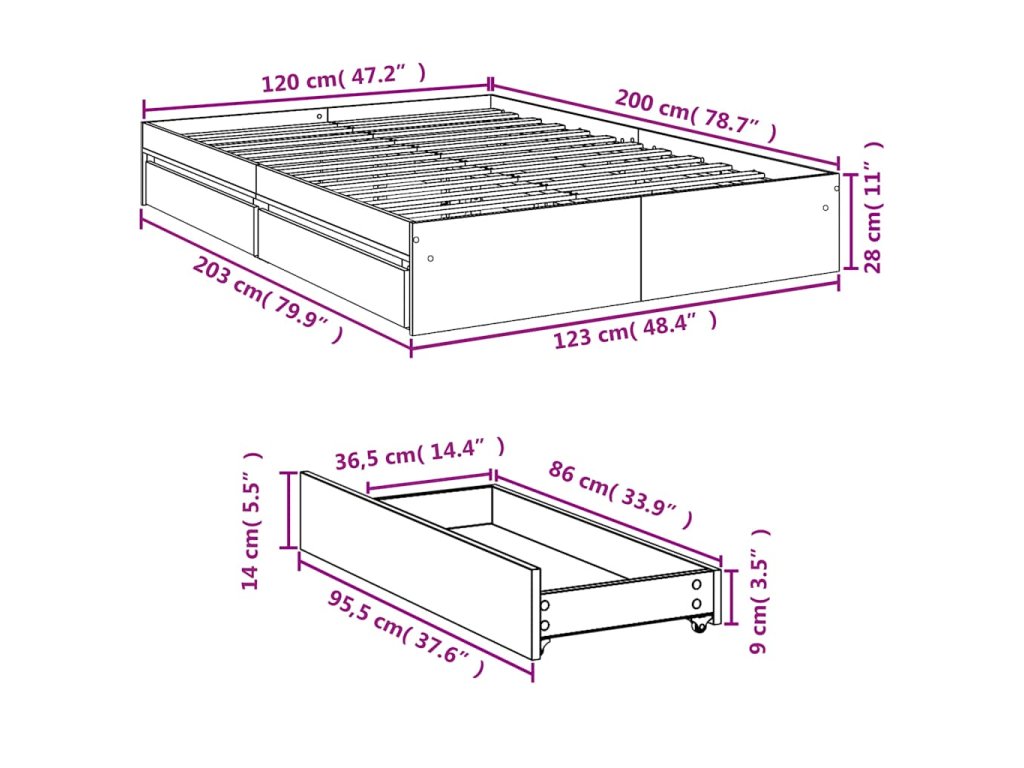 Multidom Posteľný rám so zásuvkami dub sonoma 120x200cm kompozitné drevo