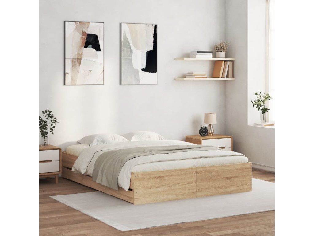 Multidom Posteľný rám so zásuvkami dub sonoma 150x200cm kompozitné drevo