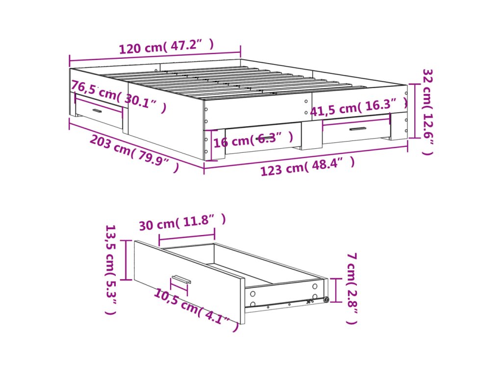 - Rozmery zásuvky postele (S): 41,5 x 31,5 x 13,5 cm (D x Š x V)