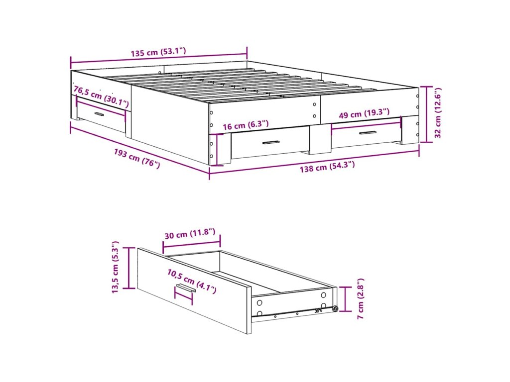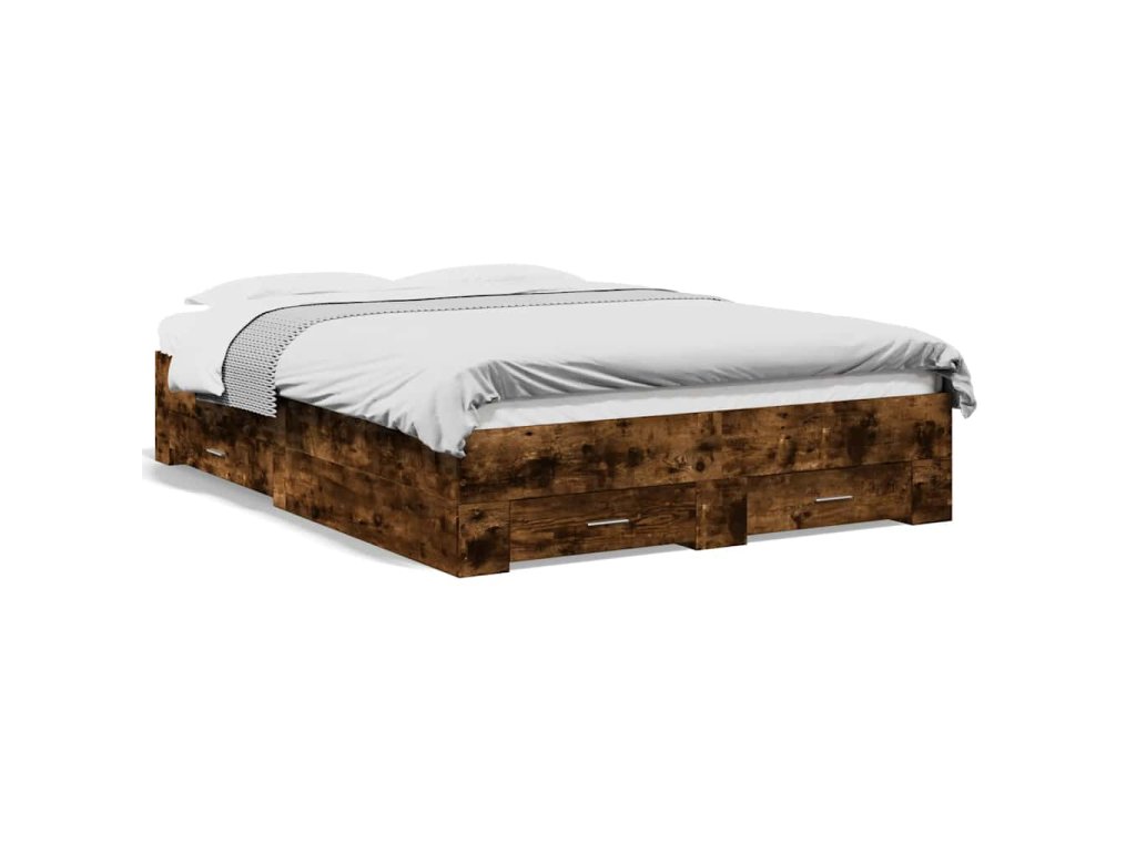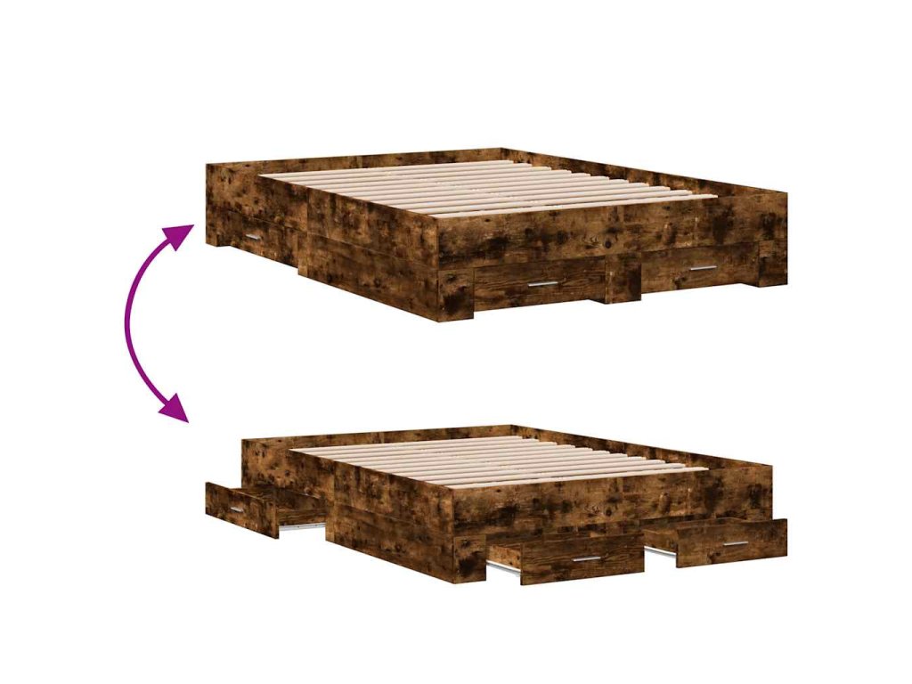 Multidom Posteľný rám so zásuvkami dymový dub 135x190cm kompozitné drevo