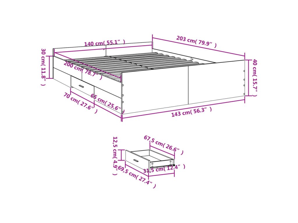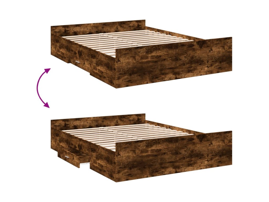Multidom Posteľný rám so zásuvkami dymový dub 140x200cm kompozitné drevo