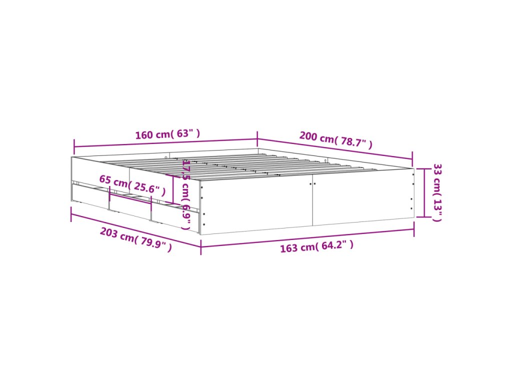 Multidom Posteľný rám so zásuvkami dymový dub 160x200cm kompozitné drevo