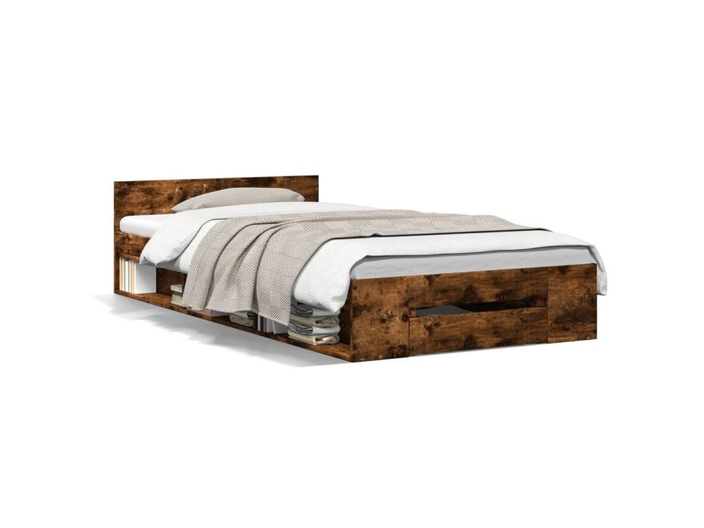 Multidom Posteľný rám so zásuvkami dymový dub 90x190 cm kompozitné drevo