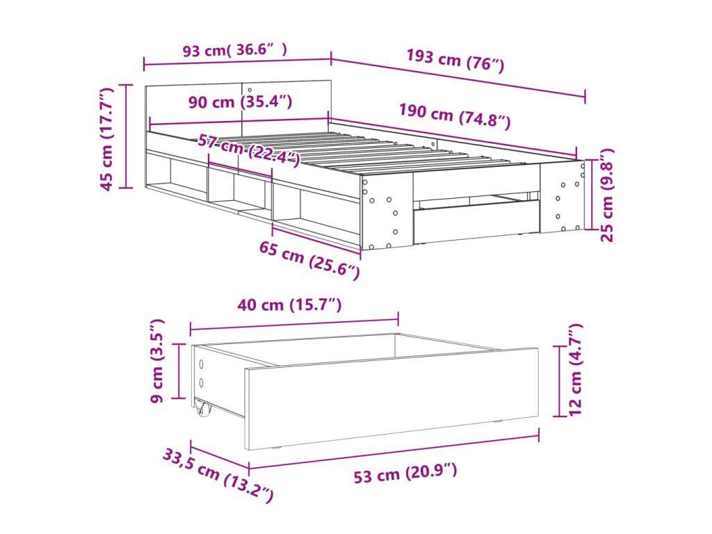 - Rozmery zásuvky postele: 53 x 33,5 x 12 cm (D x Š x V)