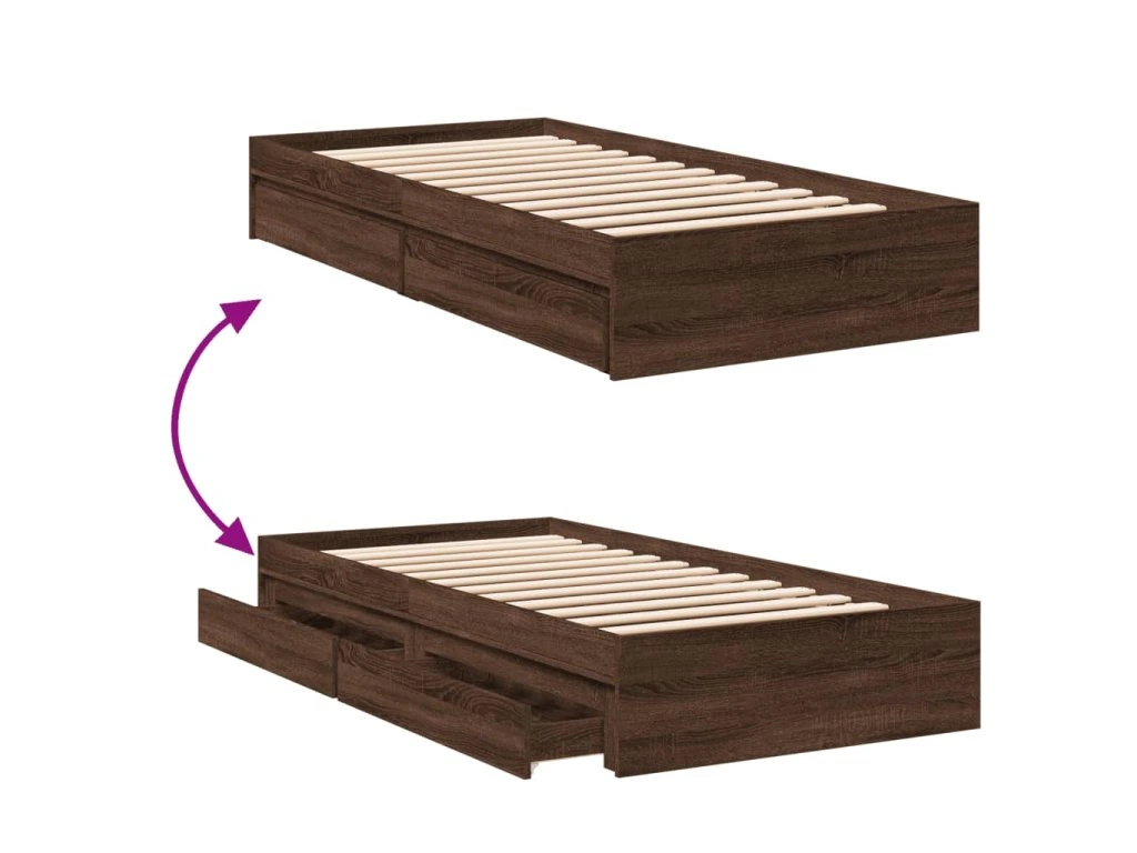 Multidom Posteľný rám so zásuvkami hnedý dub 75x190 cm kompozitné drevo