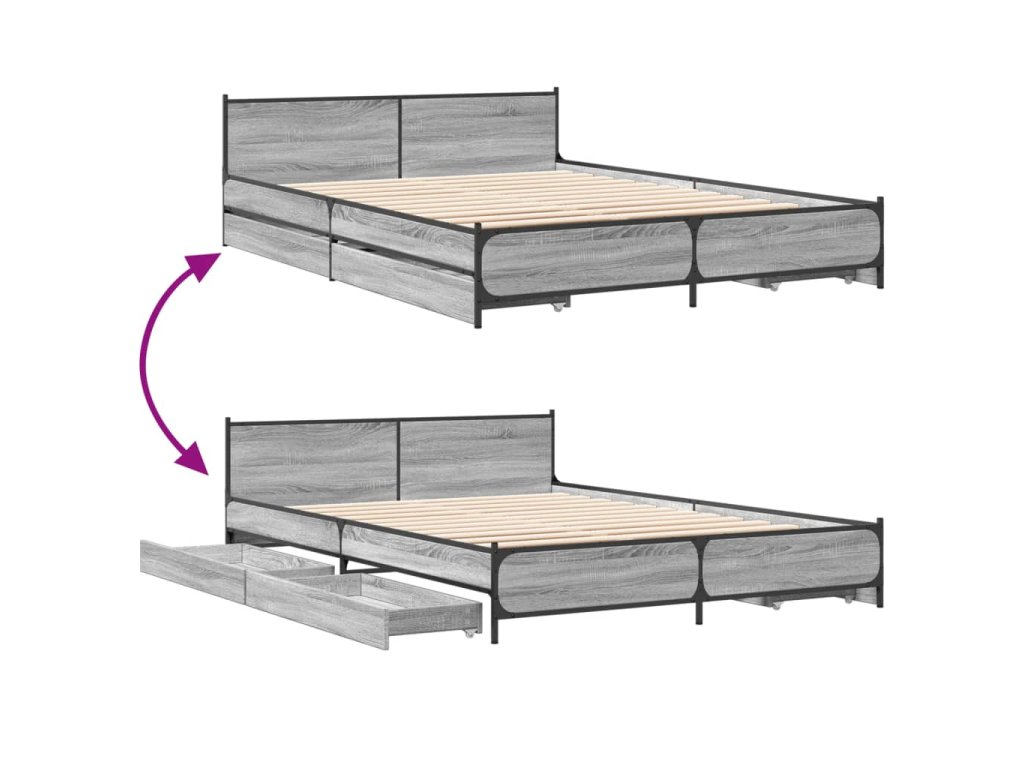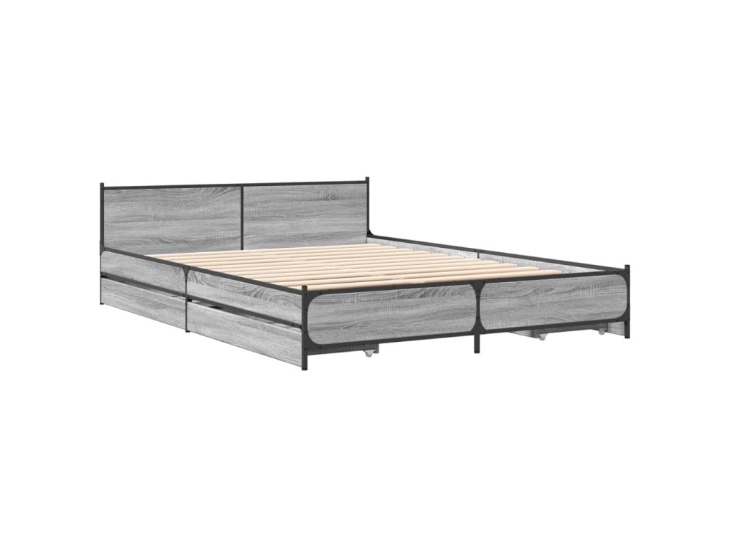 Multidom Posteľný rám so zásuvkami sivý sonoma 150x200cm kompozit. drevo