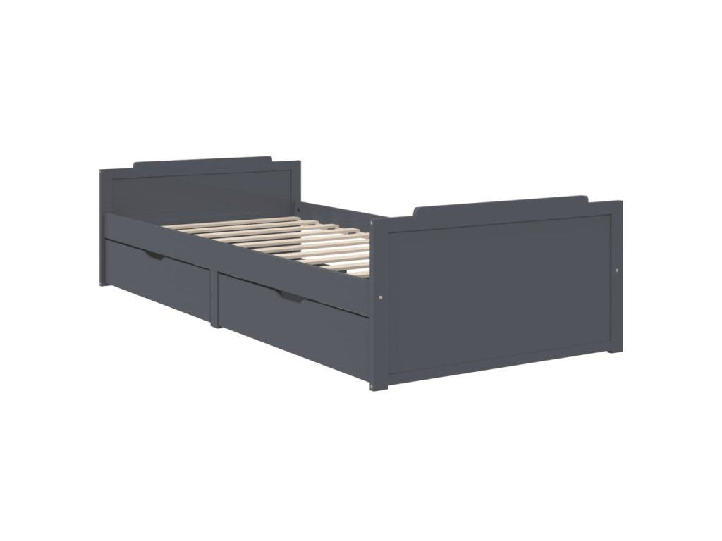 Multidom Posteľný rám so zásuvkami tmavosivý borovicový masív 90x200 cm