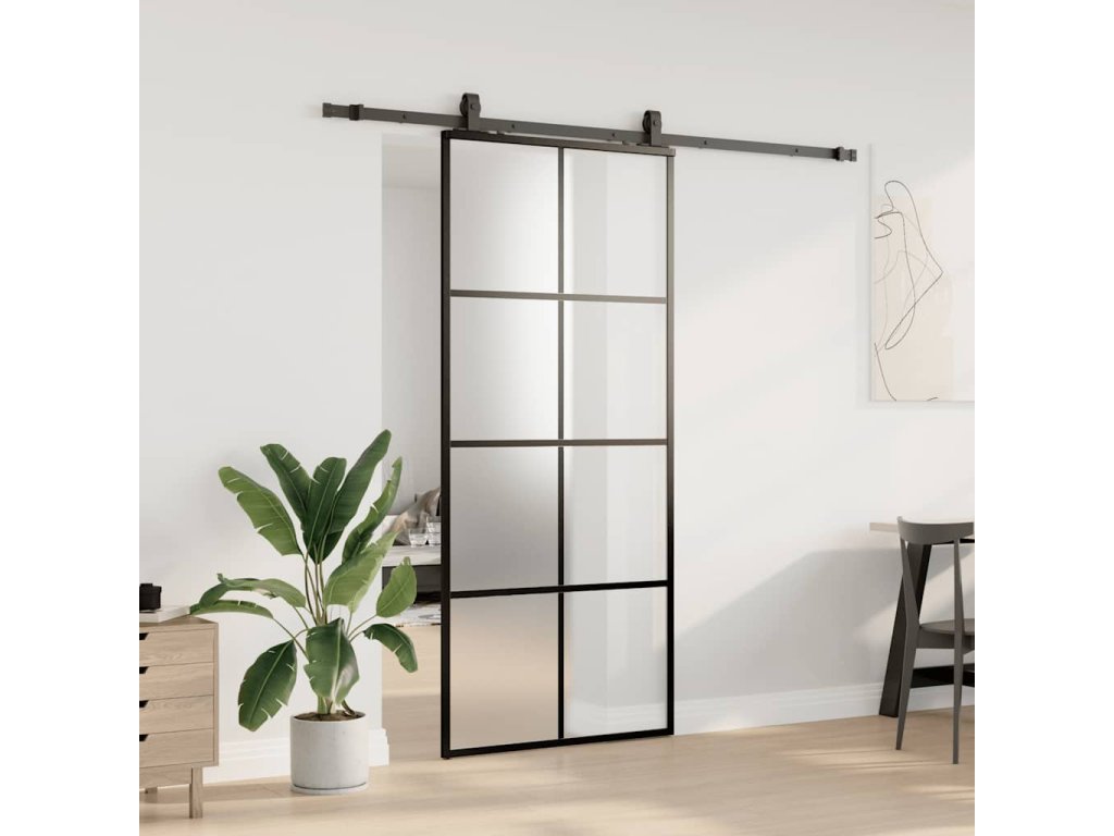 Multidom Posuvné dvere s kovaním čierne 90x205 cm ESG sklo