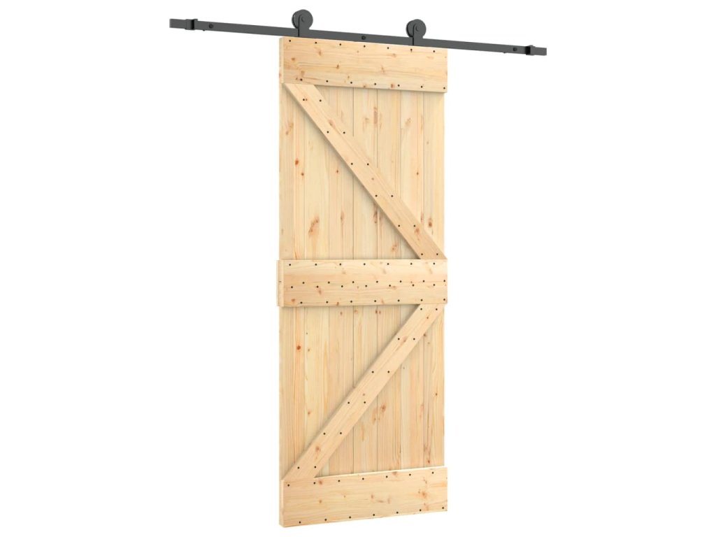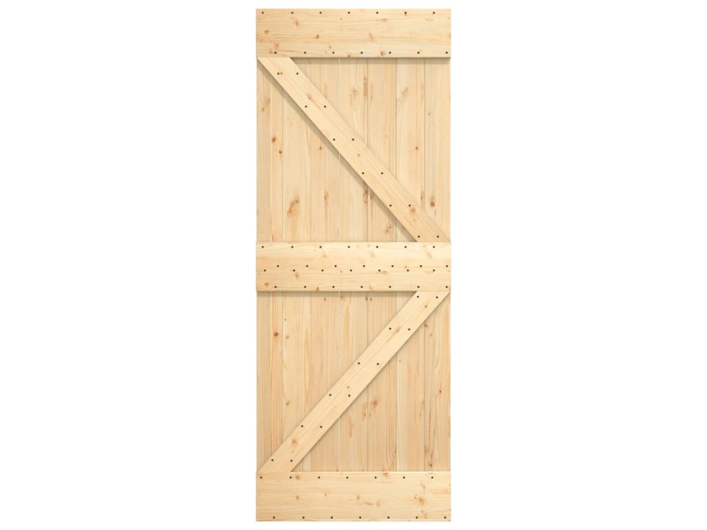 - Masívne borovicové drevo: Dvere sú vyrobené z masívneho borovicového dreva. Masívne borovicové drevo je krásny prírodný materiál. Borovicové drevo má rovnú štruktúru a uzly dodávajú materiálu jeho typický rustikálny vzhľad.