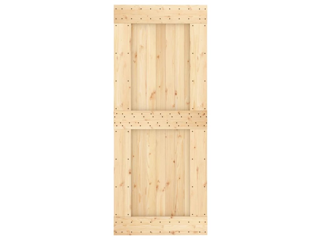 - Masívne borovicové drevo: Dvere sú vyrobené z masívneho borovicového dreva. Masívne borovicové drevo je krásny prírodný materiál. Borovicové drevo má rovnú štruktúru a uzly dodávajú materiálu jeho typický rustikálny vzhľad.