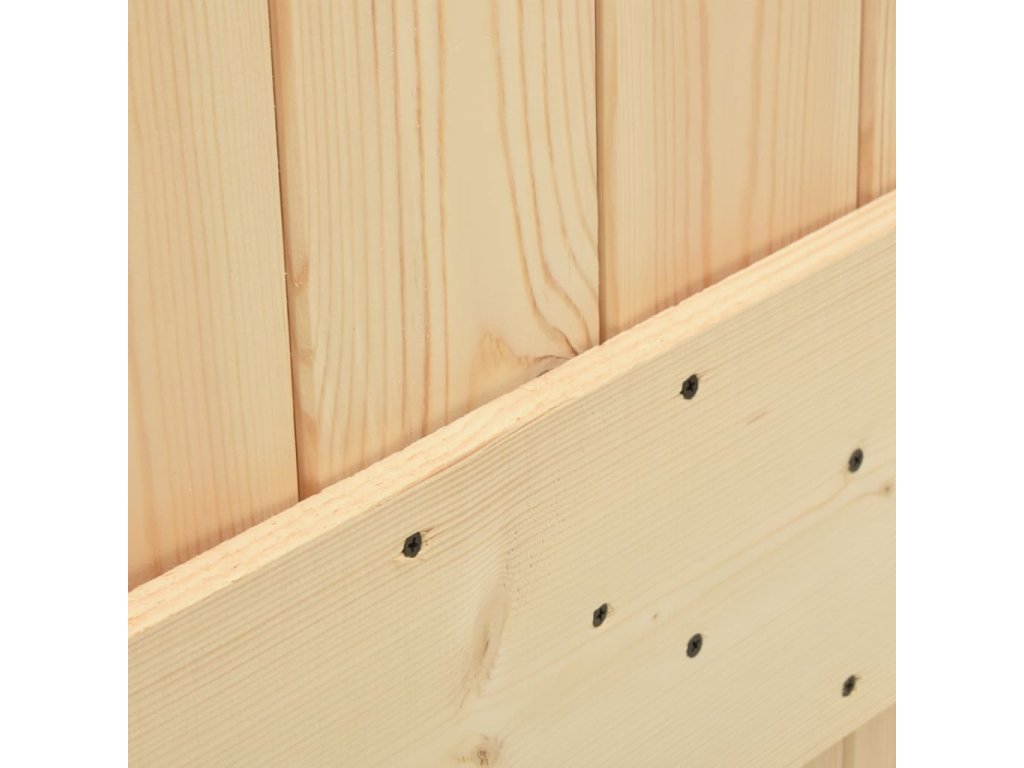 - Masívne borovicové drevo: Dvere sú vyrobené z masívneho borovicového dreva. Masívne borovicové drevo je krásny prírodný materiál. Borovicové drevo má rovnú štruktúru a uzly dodávajú materiálu jeho typický rustikálny vzhľad.