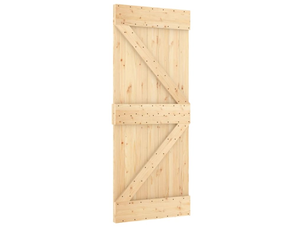 - Masívne borovicové drevo: Dvere sú vyrobené z masívneho borovicového dreva. Masívne borovicové drevo je krásny prírodný materiál. Borovicové drevo má rovnú štruktúru a uzly dodávajú materiálu jeho typický rustikálny vzhľad.