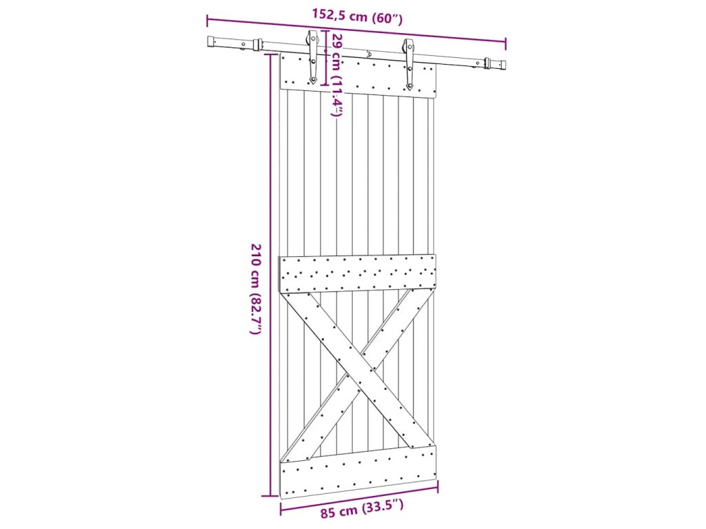 - Rozmery: 85 x 3,6/5,4 x 210 cm (Š x H x V)