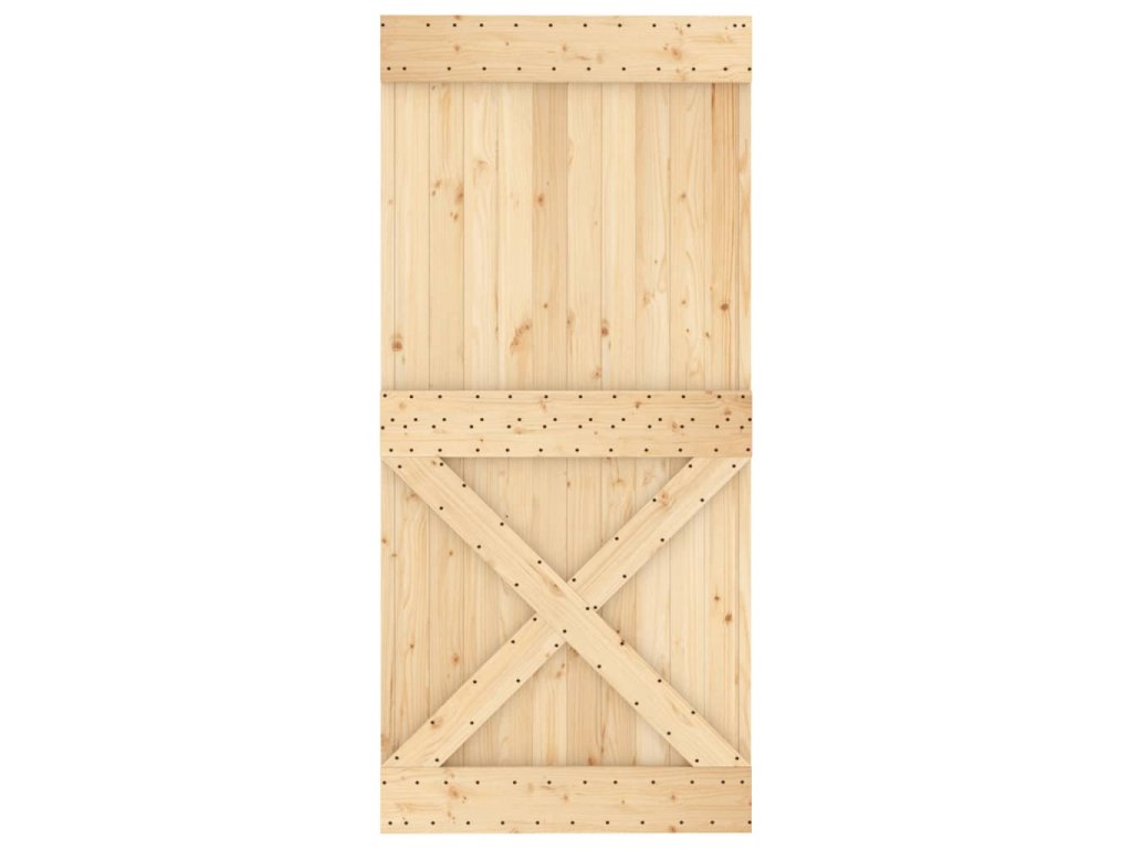 - Masívne borovicové drevo: Dvere sú vyrobené z masívneho borovicového dreva. Masívne borovicové drevo je krásny prírodný materiál. Borovicové drevo má rovnú štruktúru a uzly dodávajú materiálu jeho typický rustikálny vzhľad.