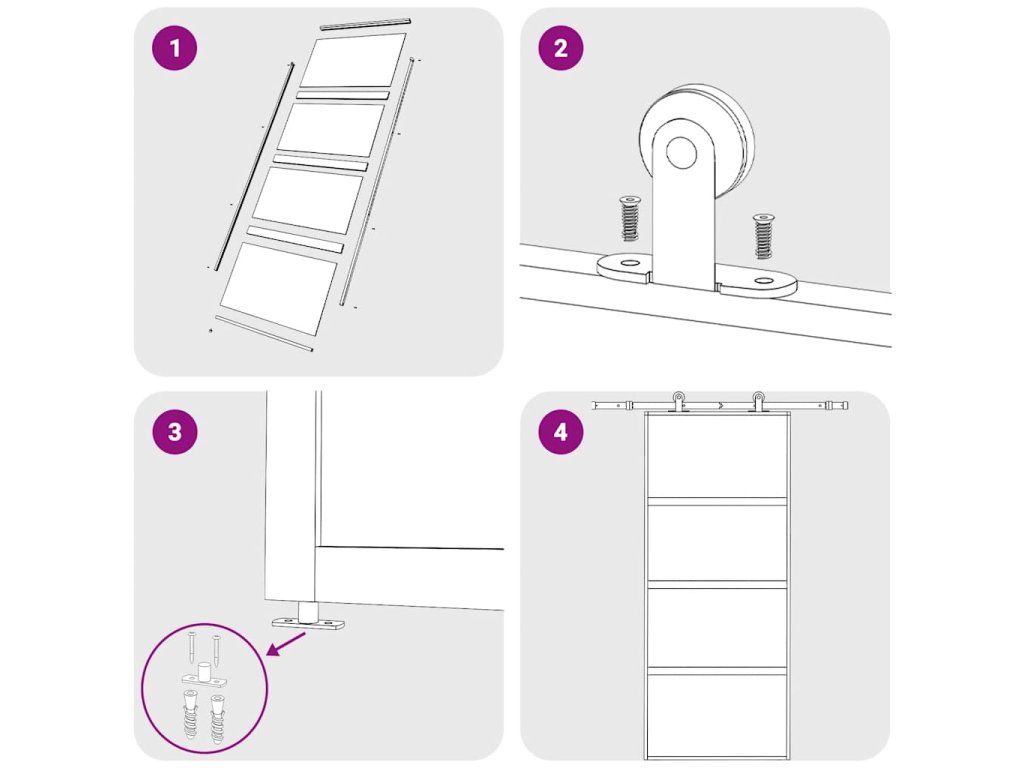 - Postup, ako dvere namontovať, nájdete v našom montážnom návode k dverám a kovaniu na posuvné dvere.