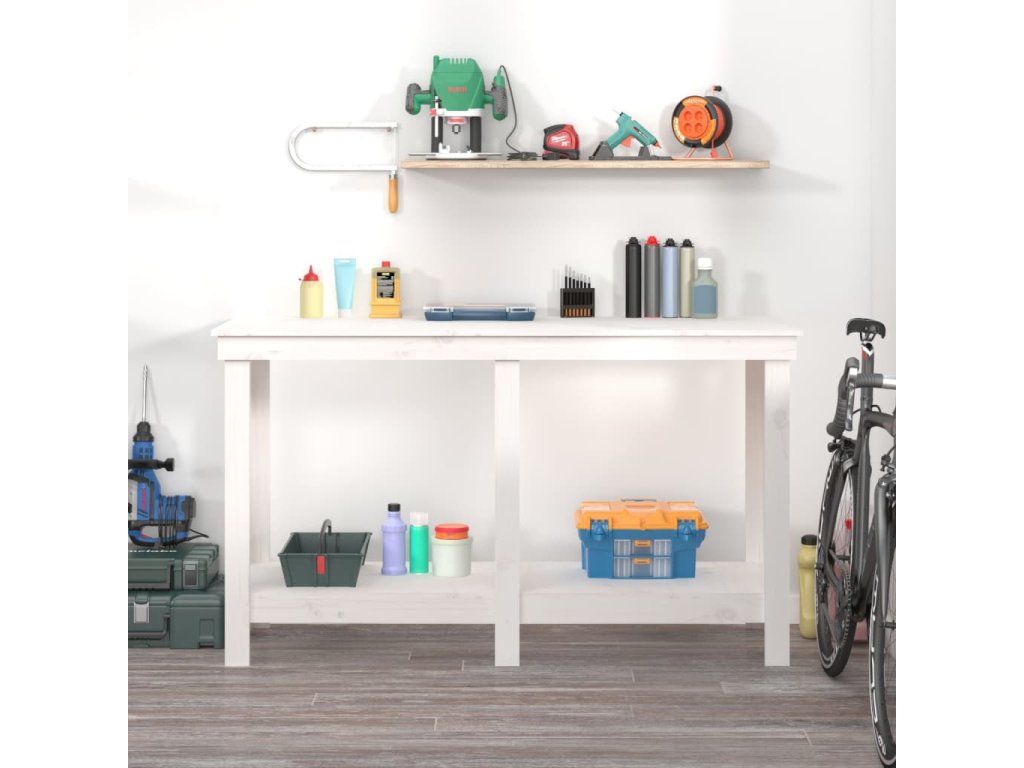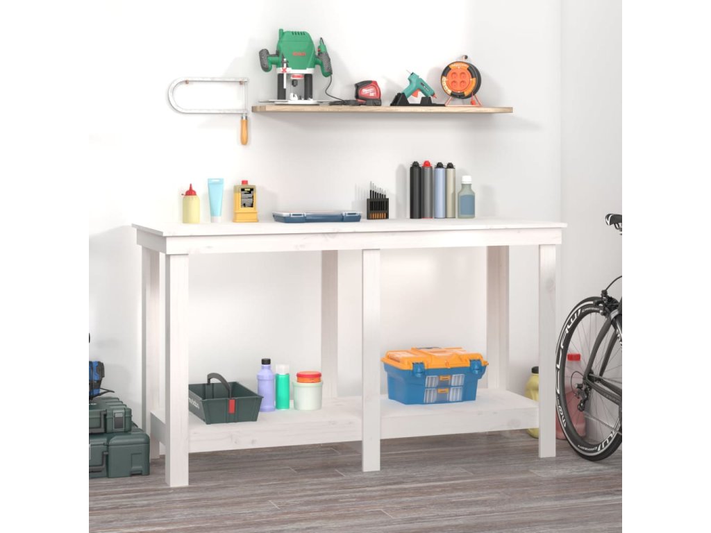 Multidom Pracovná lavica biela 140x50x80 cm masívna borovica
