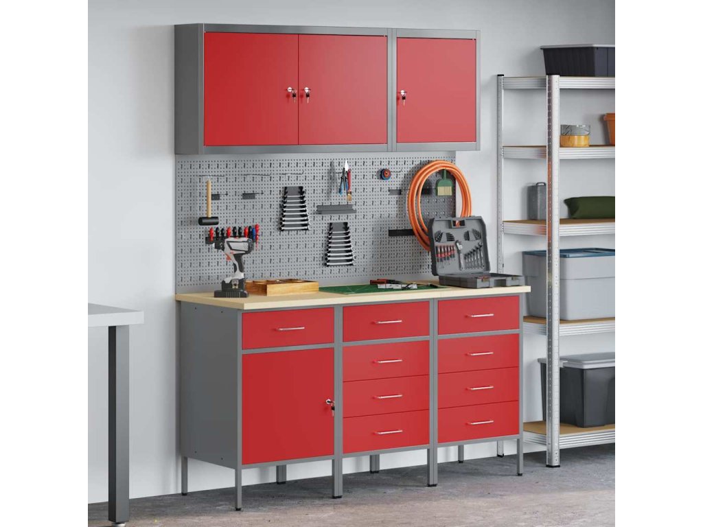 Multidom Pracovná skrinka 8 pcs Červená Inžinierske drevo a oceľ