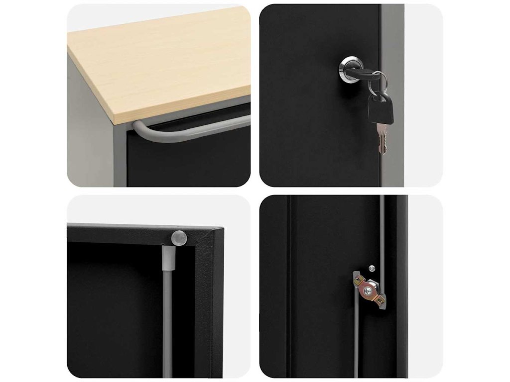 - Integrované vačkové zámky: Pomáhajú udržiavať náradie v bezpečí, pričom vačkové zámky v priehradkách umožňujú bezpečné uloženie. Tieto zámky s otáčacím mechanizmom bránia neoprávnenému prístupu a dodávajú vám kľud aj v rušnom prostredí.