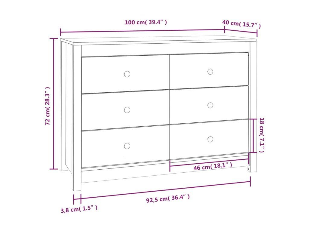- Masívne borovicové drevo: Táto skrinka je vyrobená z masívneho borovicového dreva. Masívne borovicové drevo je krásny prírodný materiál. Borovicové drevo má rovnú štruktúru a uzly dodávajú materiálu jeho typický rustikálny vzhľad.