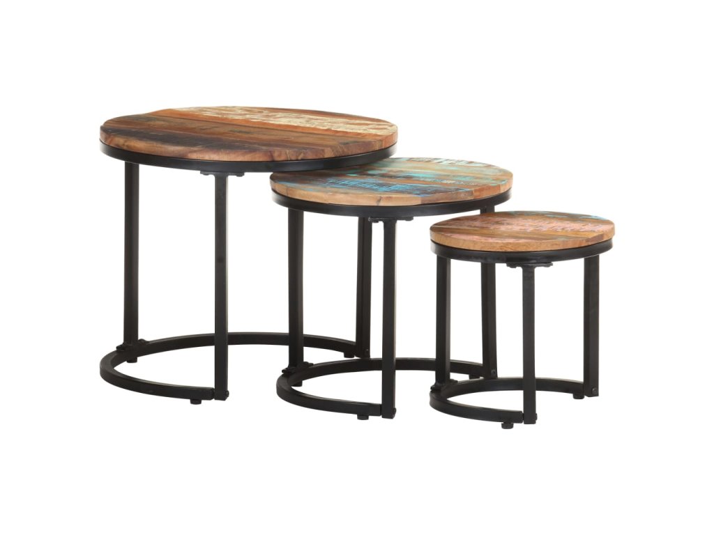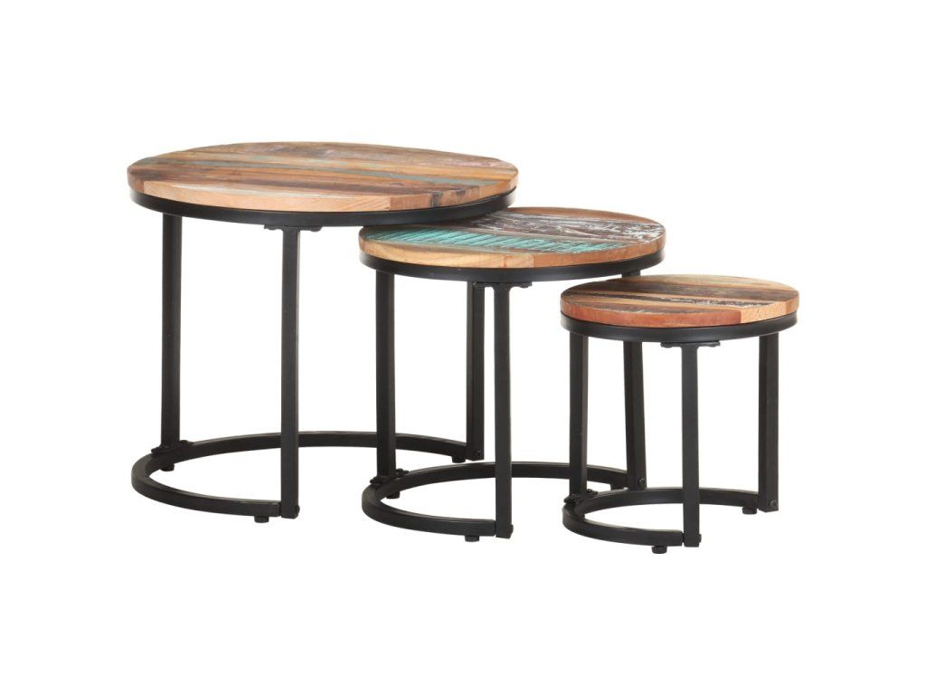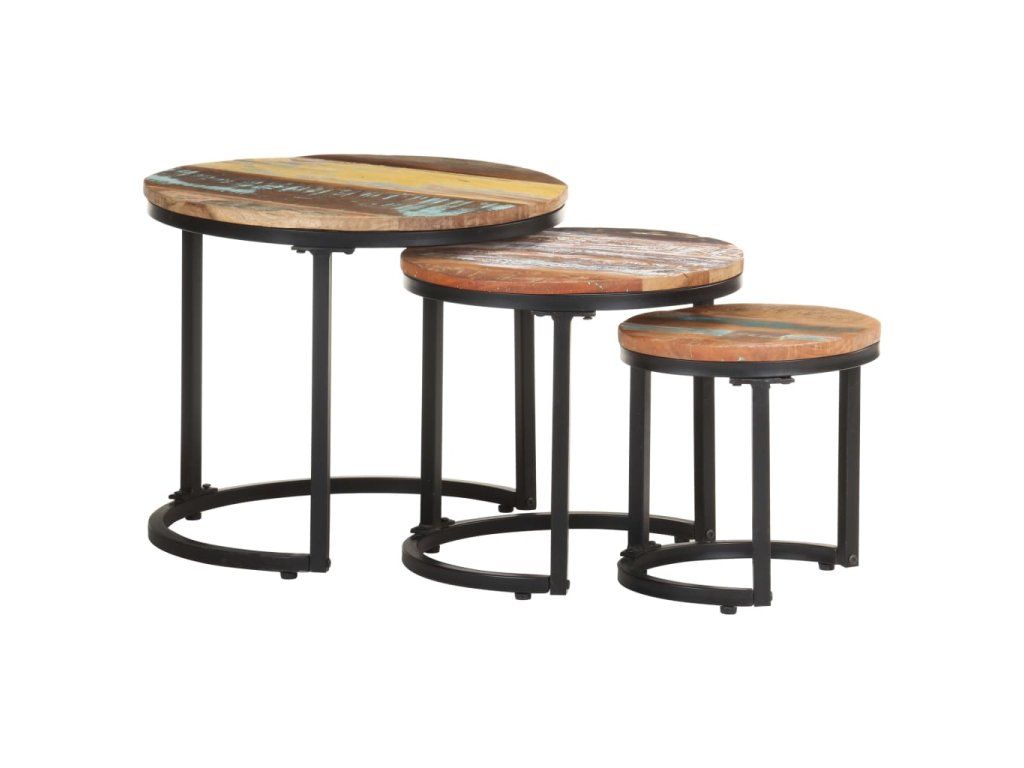 Multidom Príručné stolíky 3 ks recyklovaný masív
