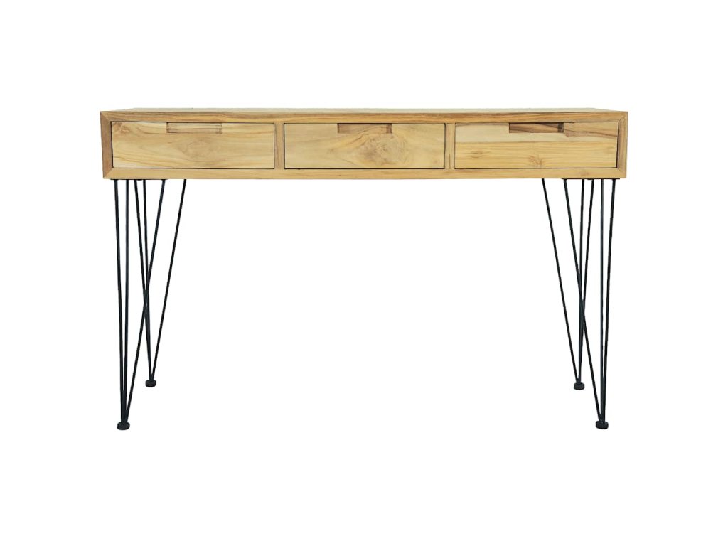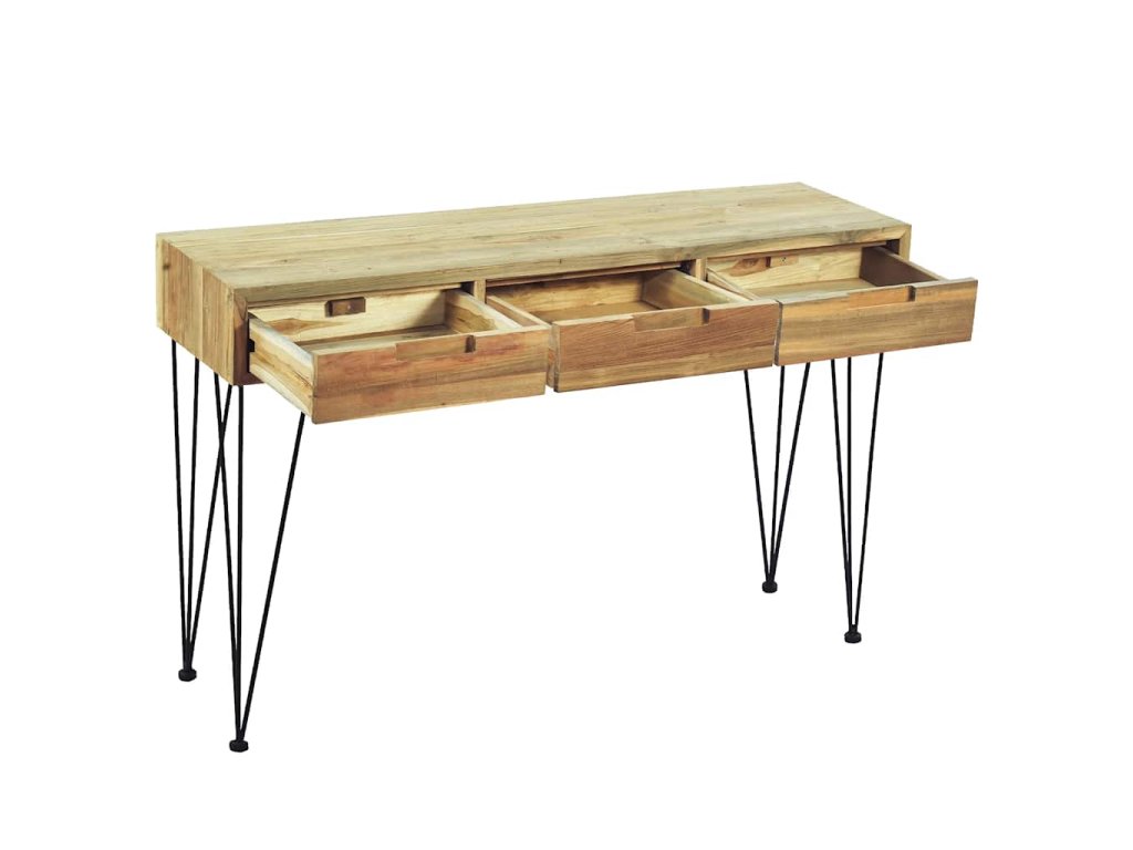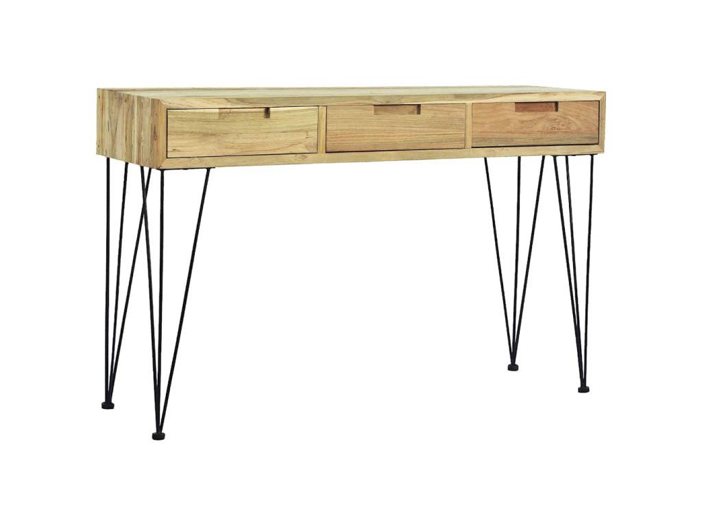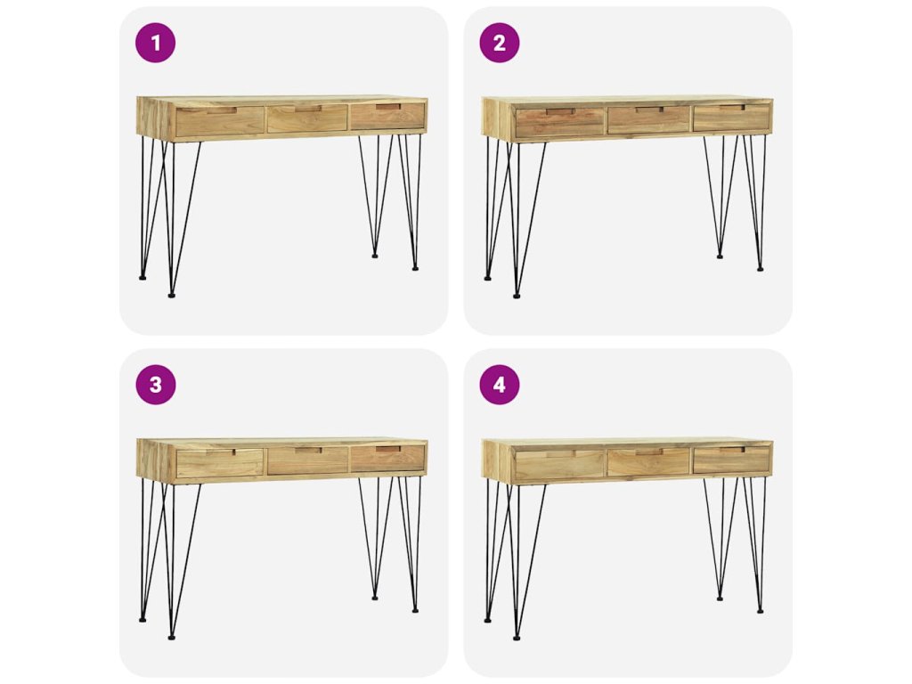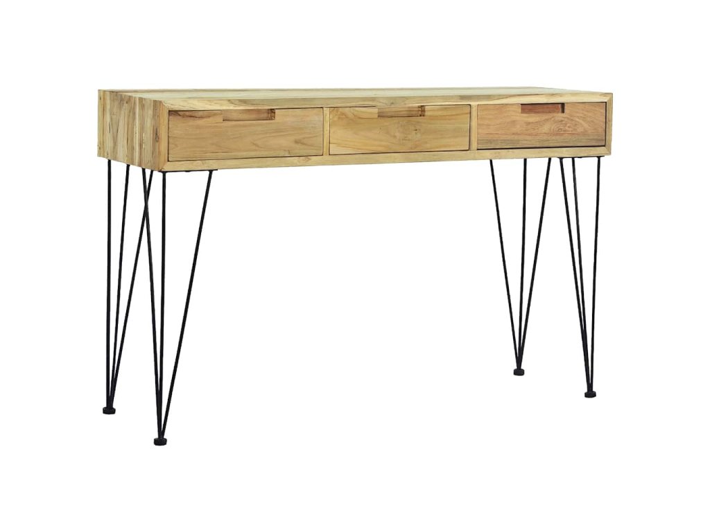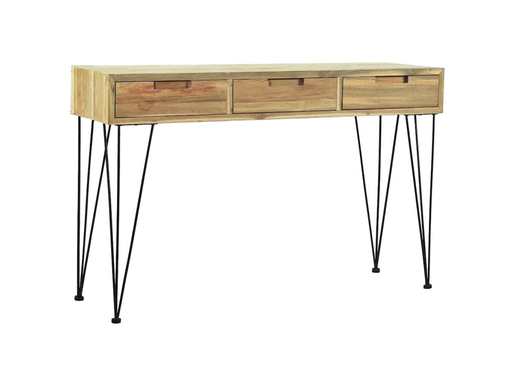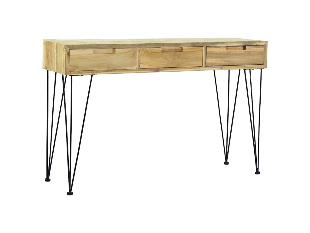 Stolík má vrchnú dosku z robustného tvrdého dreva, na ktorú môžete umiestniť dekoratívne predmety, ako sú koše s ovocím alebo vázy. Jeho súčasťou sú 3 zásuvky, ktoré poskytujú dostatok priestoru na uloženie všetkých menších predmetov. Tento pevný prístavný stolík je podporovaný pevnými nohami z tepaného železa. Montáž je veľmi jednoduchá.
