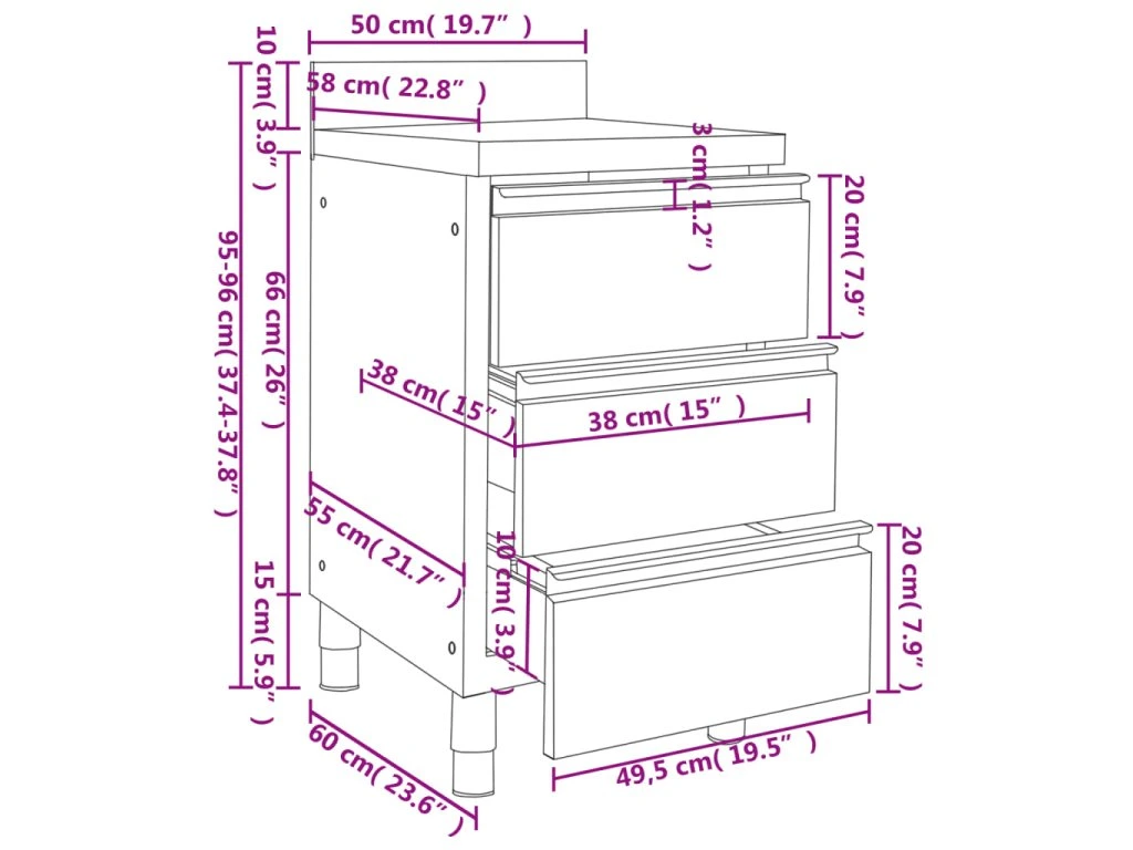 - Rozmery: 50 x 60 x (95-96) cm (Š x H x V)