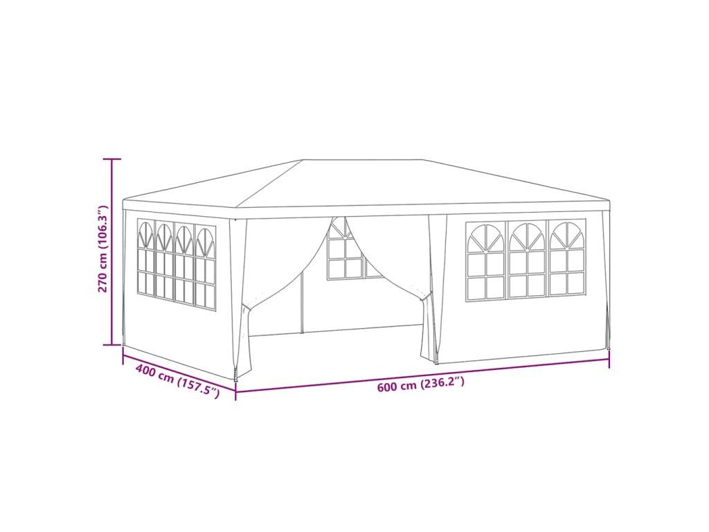 Záhradný stan je vyrobený z polyetylénového materiálu odolného voči UV žiareniu a vode, a preto je veľmi praktický na vonkajšie použitie. Rám je vyrobený z ocele odolnej voči hrdzi, vďaka čomu je vonkajší prístrešok stabilný a odolný. Párty stan má bočné panely, každý s ozdobnými okienkami, a 1 dverový panel so zipsom pre jednoduchý vstup. Záhradný altánok sa ľahko montuje.