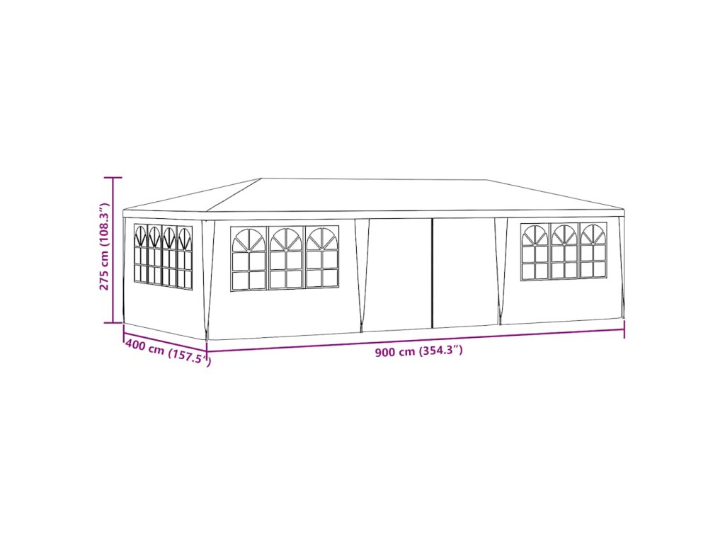 Multidom Profesionálny párty stan+bočné steny 4x9 m, antracitový 90 g/m²