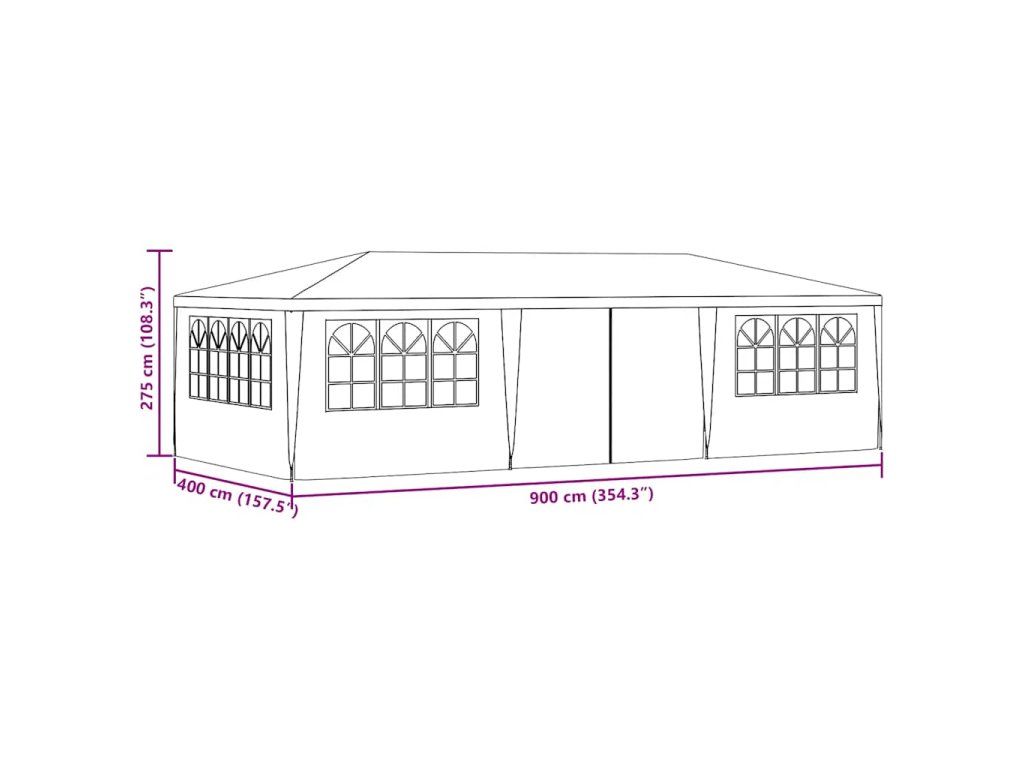 Multidom Profesionálny párty stan+bočné steny 4x9 m, biely 90 g/m²