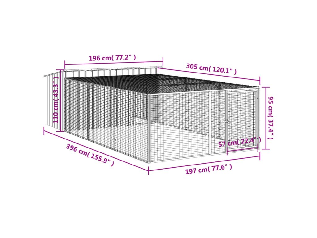 Multidom Psí domček s výbehom, antracitový 197x396x110 cm, pozinkovaná oceľ