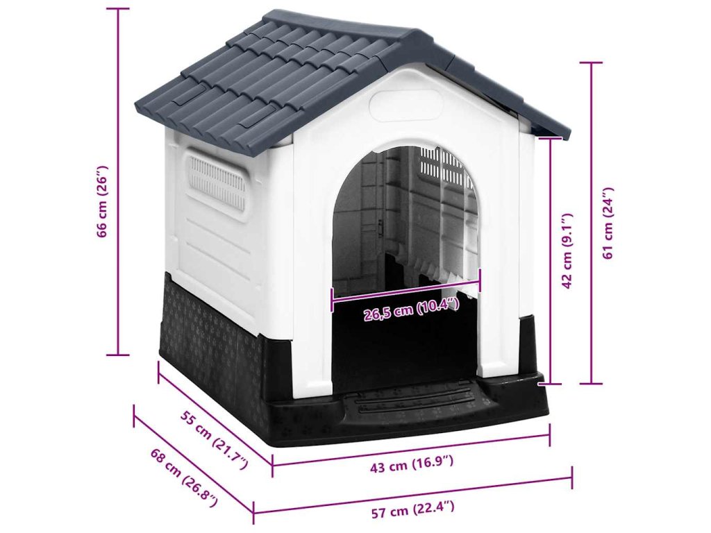 Multidom Psí domček sivý 57x68x66 cm polypropylén